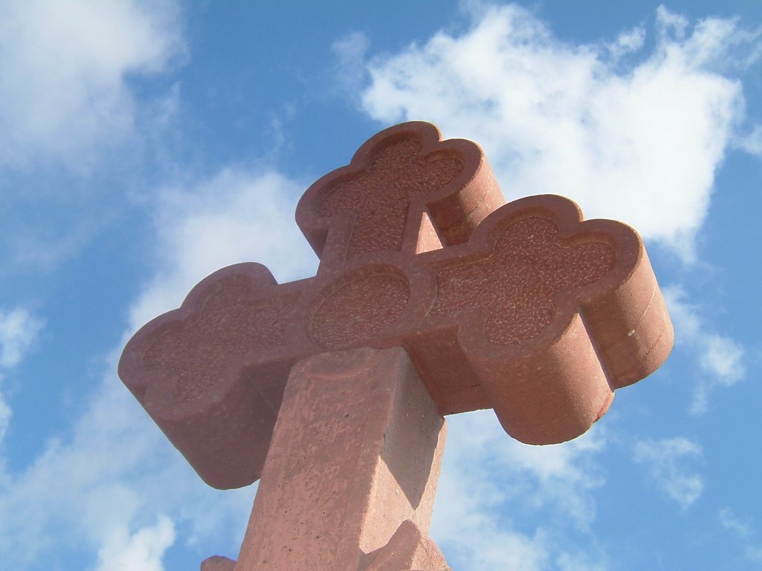 Am 25. Mai 1992: Segnung des Wegekreuzes an der Straßengabelung Landstuhl/Knopp (Stiftung der KAB)