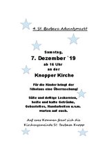 Am 07. Dezember findet bereits zum 4. mal der Adventsmarkt rund um die Kirche in Knopp statt.