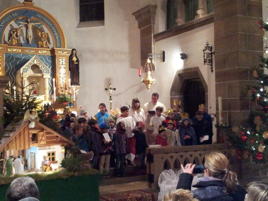 Während dem Gottesdienst, der von den kleinen Königen und Königen aktiv mitgestaltet wurde, wurde auch die Kreide gesegnet mit der in den kommenden Tagen der Segen an die Haustüren geschrieben werden wird. In 16 Orten der Pfarrei Hl. Bruder Konrad werden wieder eigene Sternsingergruppen unterwegs sein. Bei der vergangenen Aktion Dreikönigssingen konnten im Jahr 2016 über 17.500 € für die Projekte der Sternsinger gesammelt werden. Wie im vergangenen Jahr werden wieder etwa 50 Gruppen die Haushalte in unserer Pfarrei besuchen. Besondere Freude bereitete den Kindern in der Wiesbacher Kirche die Ankündigung von Gemeindereferent Lars Harstick, dass die Pfarrei alle fleißigen Sternsinger im Februar wieder zum Dank zum Schlittschuhlaufen in die Ice-Arena nach Zweibrücken einladen würde.