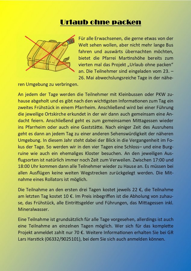 Weitere Informationen erhalten sie bei GR Lars Harstick (06332(9025101), der auch gerne ihre Anmeldungen entgegen nimmt.